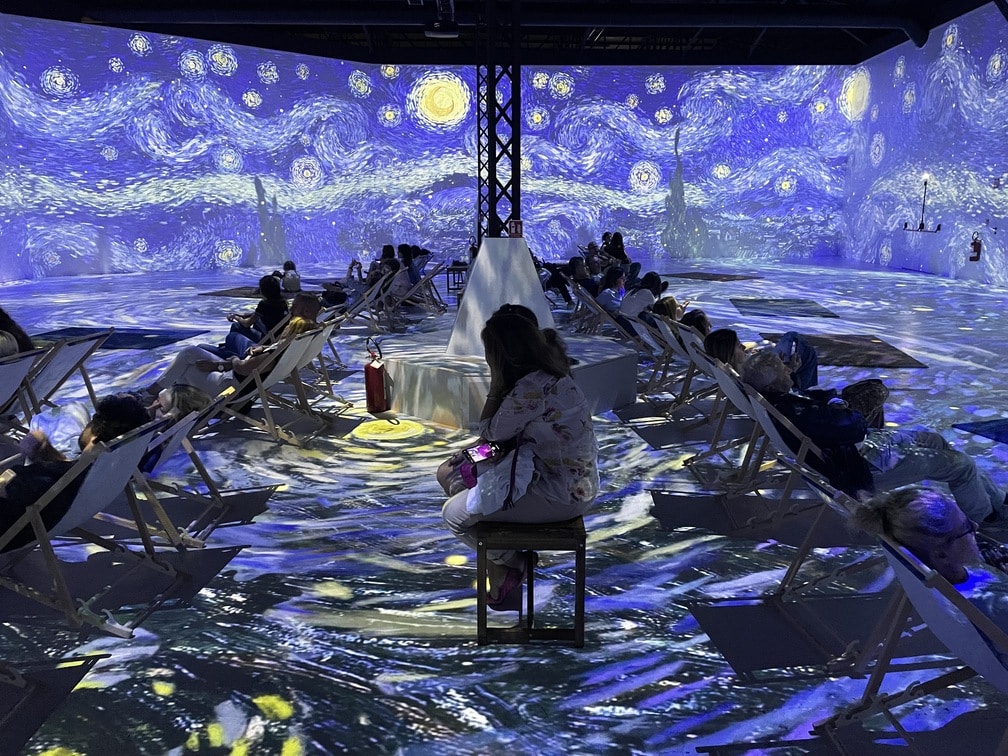Grazie a proiezioni a 360° potrete “tuffarvi” nelle opere più celebri del noto pittore, saranno tutte intorno a voi e vi ritroverete completamente immersi in campi di girasoli, notti stellate e mandorli in fiore.