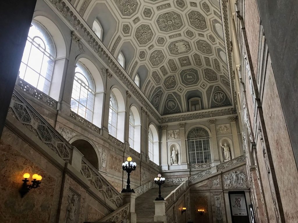 Iniziamo la visita da Palazzo Reale che ha rappresentato per oltre tre secoli il centro del potere a Napoli e in tutta l’Italia meridionale. Il Palazzo, per la sua stessa posizione, si presta naturalmente a essere il cuore pulsante della città. La missione del museo al suo interno è proprio quella di favorire al massimo il dialogo con il contesto urbano, riscoprendo il ruolo di una reggia fastosa, creata per stupire il visitatore in quanto specchio del potere reale.