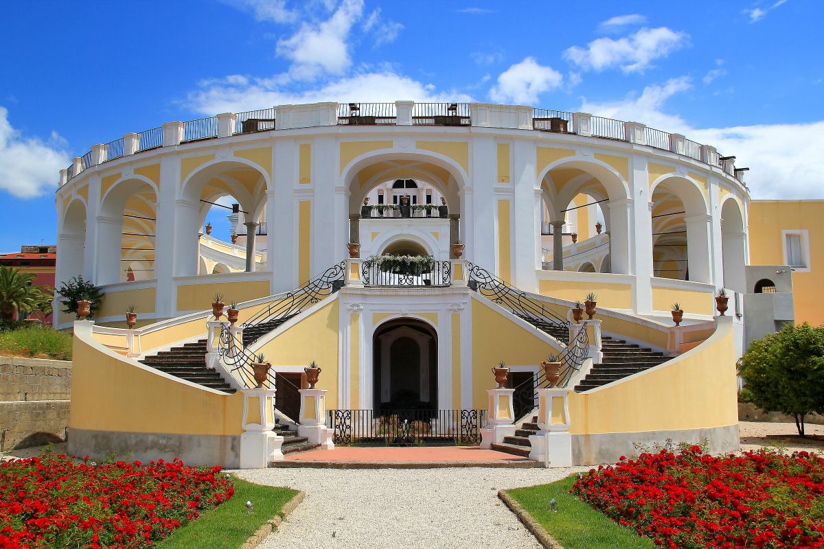 Non lontano dalla Reggia di Portici, in una posizione suggestiva a valle della borbonica strada delle Calabrie, visiteremo Villa Campolieto che venne edificata per volontà del Principe Luzio De Sangro, Duca di Casacalenda che nel 1755, affidò il progetto e l’esecuzione dei lavori a Mario Gioffredo il quale, costretto ad abbandonare i lavori intorno al 1760, fu sostituito da Luigi Vanvitelli prima del completamento del progetto nel 1775 da parte del figlio Carlo.
