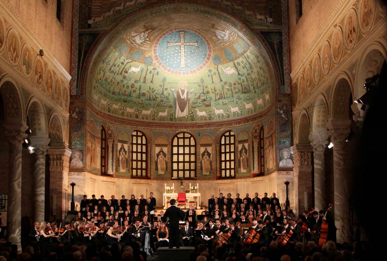 Fondato nel 1990 da Cristina Mazzavillani Muti, Ravenna Festival si è sempre caratterizzato per un programma che include tutti i linguaggi artistici, dalla musica sinfonica a quella da camera, dall’opera al teatro, dalla danza al musical, dal jazz alla musica etnica. Ogni anno da giugno a luglio una città intera diventa palcoscenico per due mesi. Luoghi straordinari e una vocazione multidisciplinare sono i tratti distintivi che rendono unico Ravenna Festival e contribuiscono a riscoprire una città crocevia di popoli e di culture. Ogni anno la direzione artistica compone un ricco programma di eventi che ruotano attorno a un tema significativo dal punto di vista culturale e artistico.